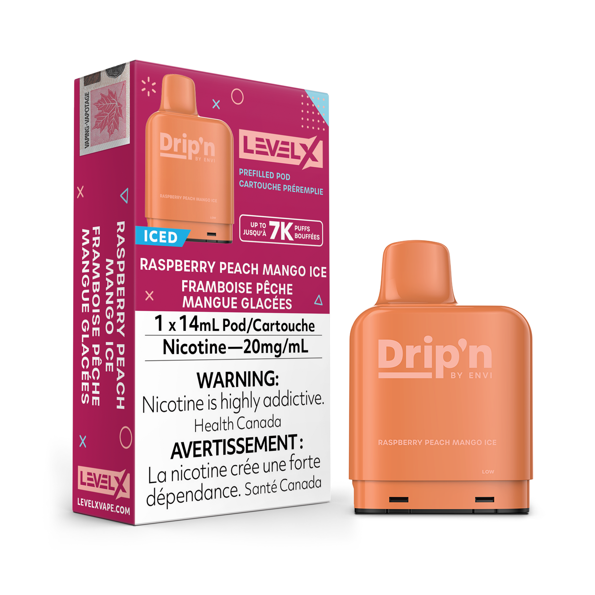 RASPBERRY PEACH MANGO ICE - LEVEL X DRIP'N POD (14mL) (FEDERAL)