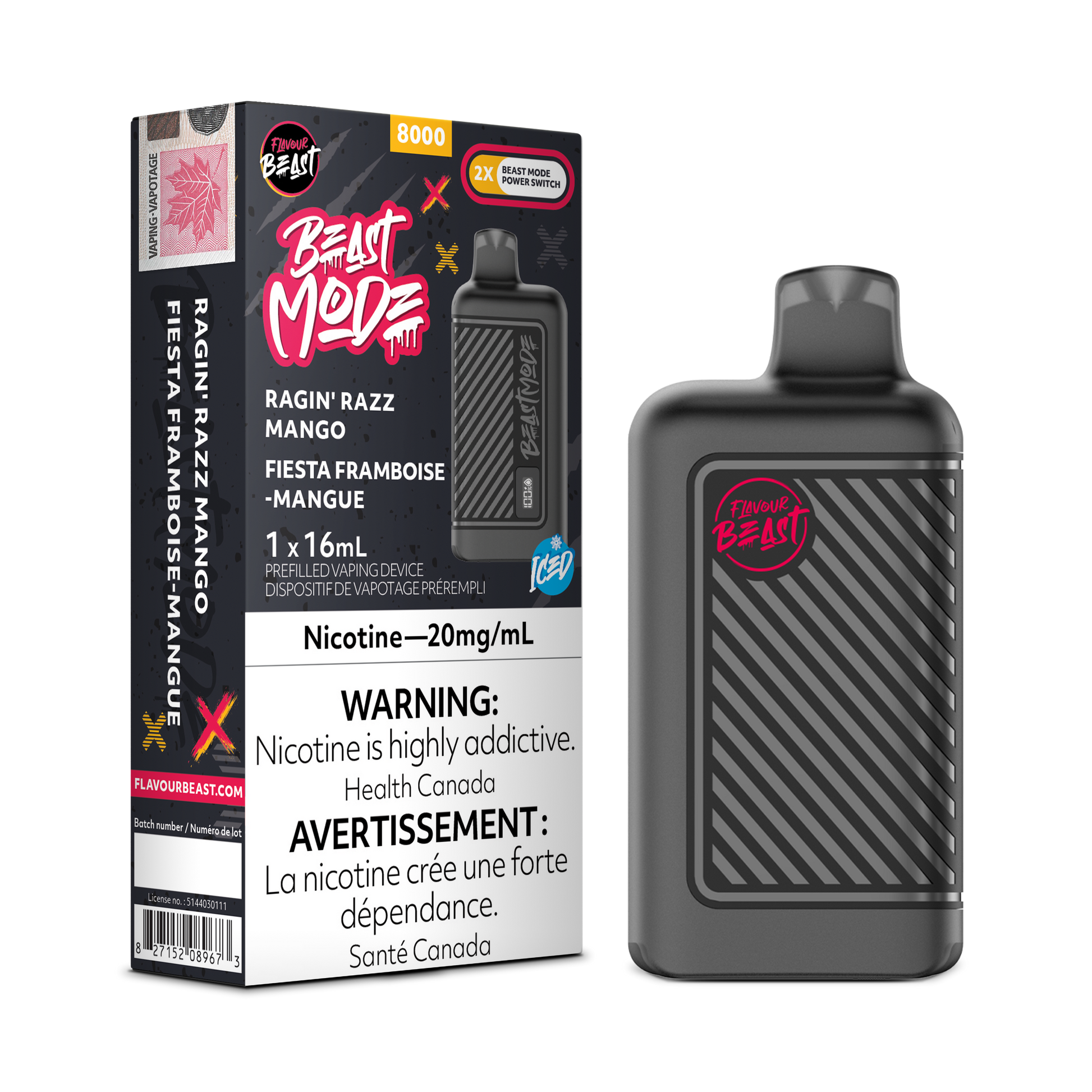 RAGIN' RAZZ MANGO - FLAVOUR BEAST BEAST MODE 8K (ONTARIO)